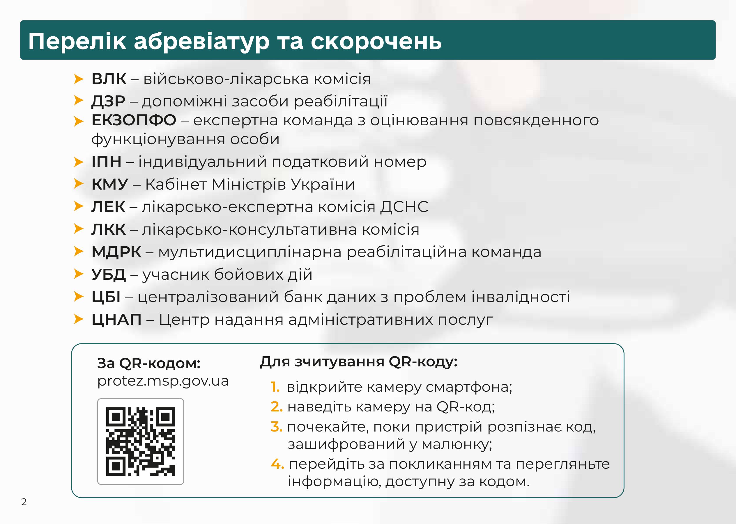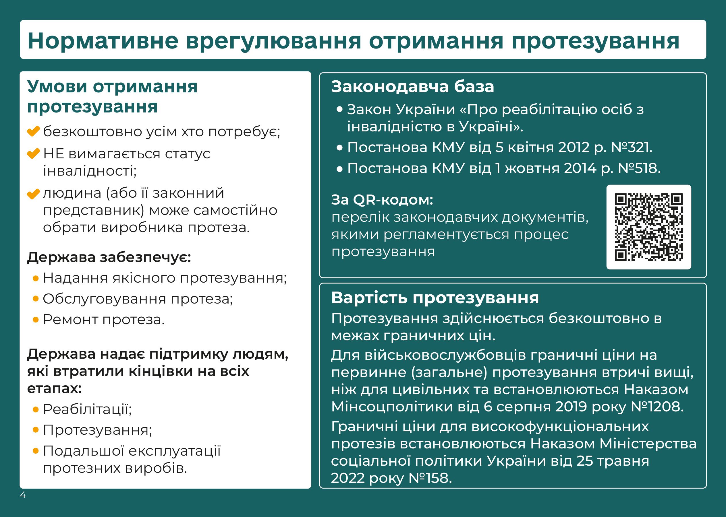 На офіційному сайті Міністерства соціальної політики України створено платформу щодо реалізації державної програми безоплатного протезування та засобів реабілітації. У межах цієї програми кожен громадянин може не лише безоплатно отримати протез або інший засіб реабілітації, а й послуги з його ремонту, заміни та обслуговування. Ця платформа має на меті підтримку людини на всіх етапах — від подання заяви і до отримання самого виробу. Посилання на платформу Мінсоцполітики https://protez.msp.gov.ua/