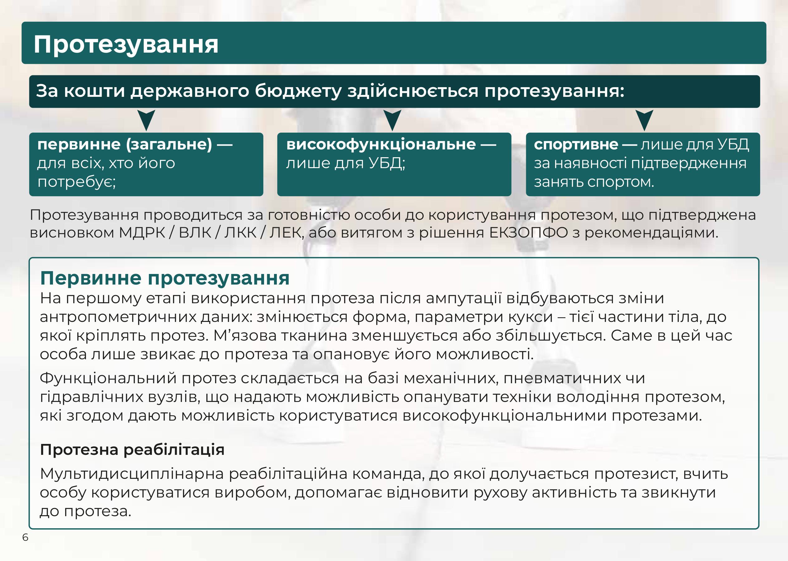 Держава гарантує забезпечення високоякісними сучасними протезами та іншими засобами реабілітації, що дають змогу відновити втрачені функції, адаптуватися до нових умов та повернутися до активного соціального життя.